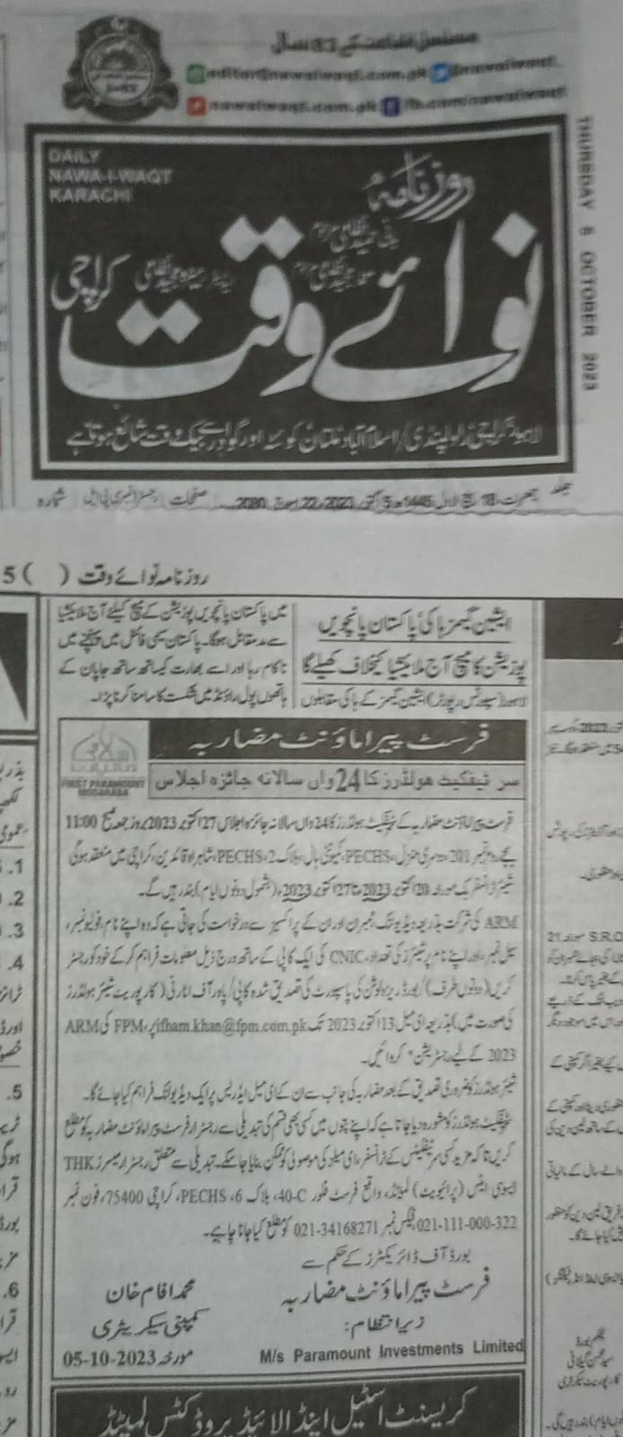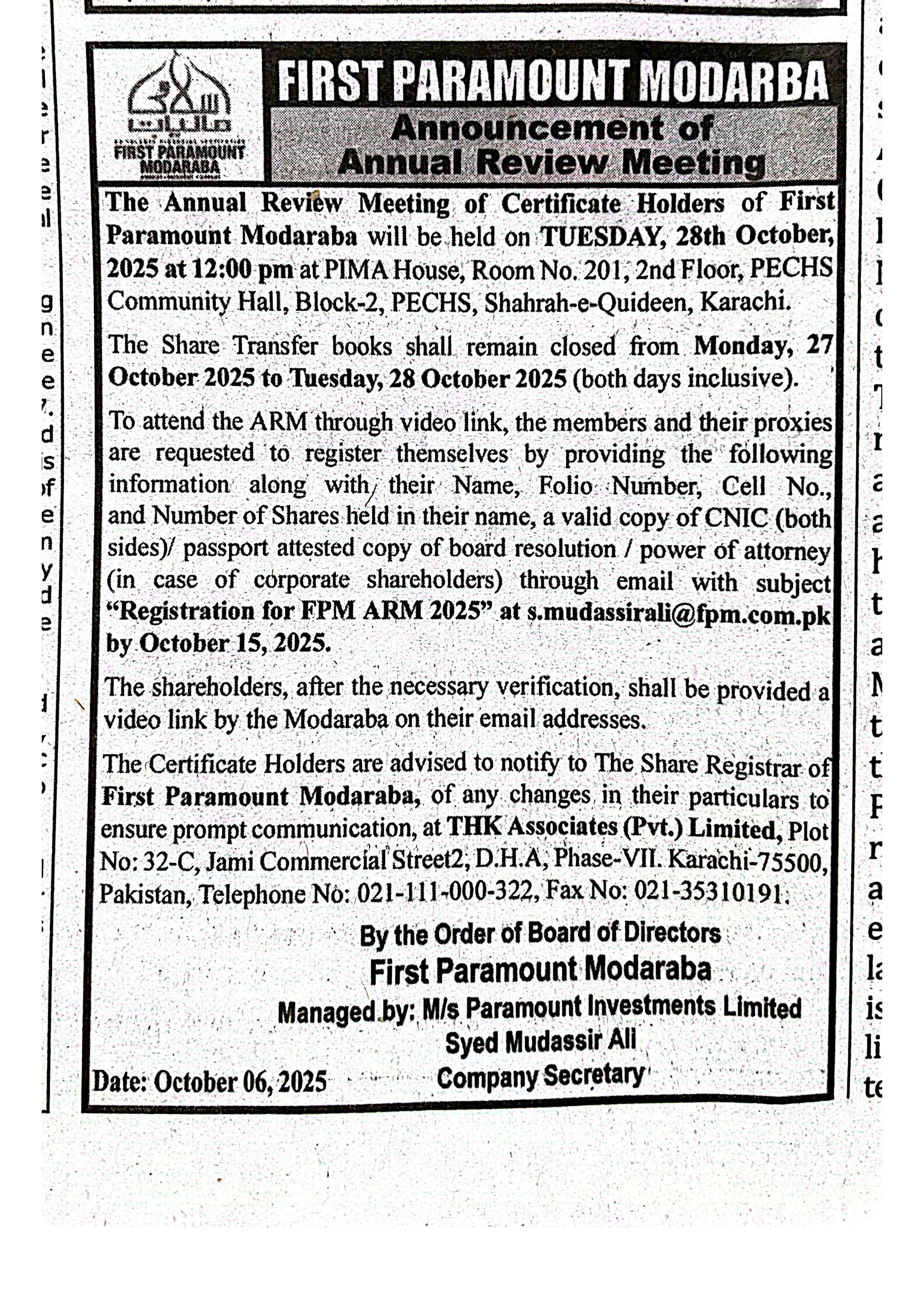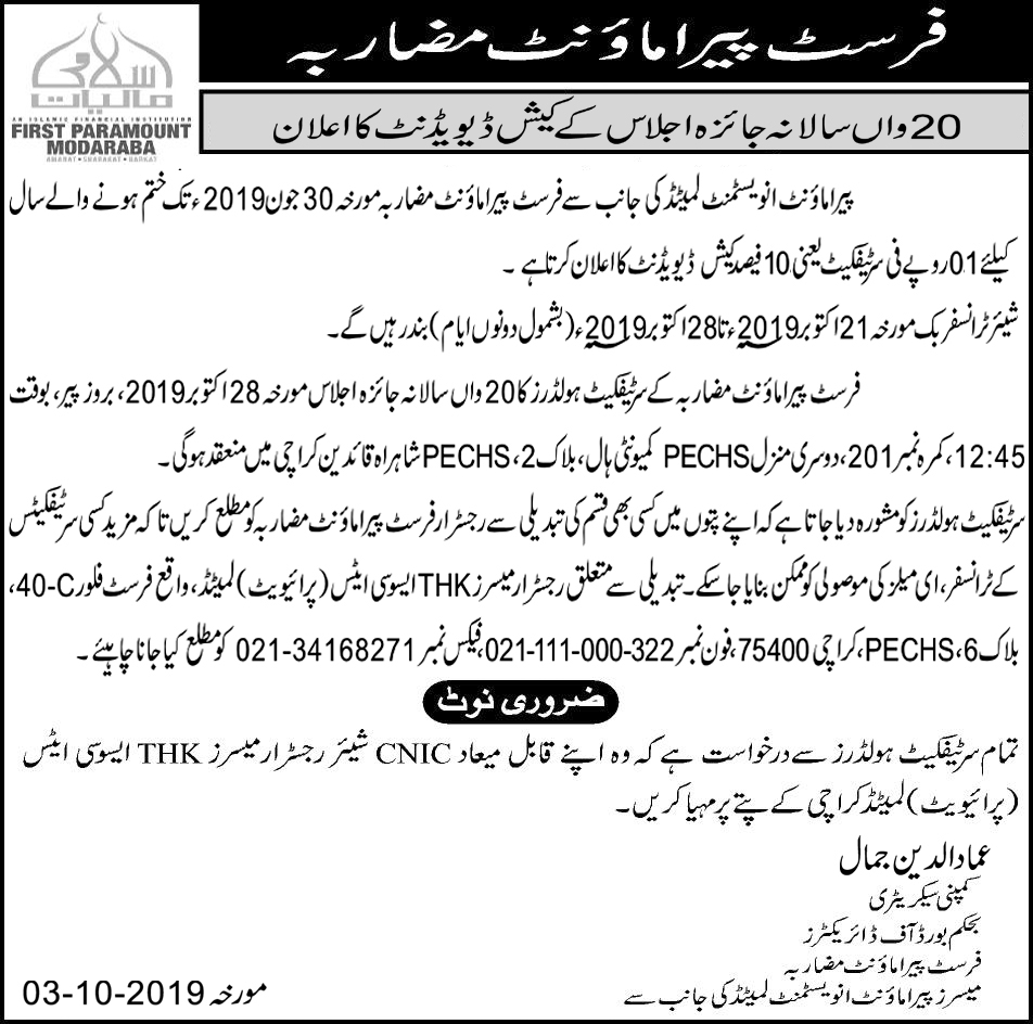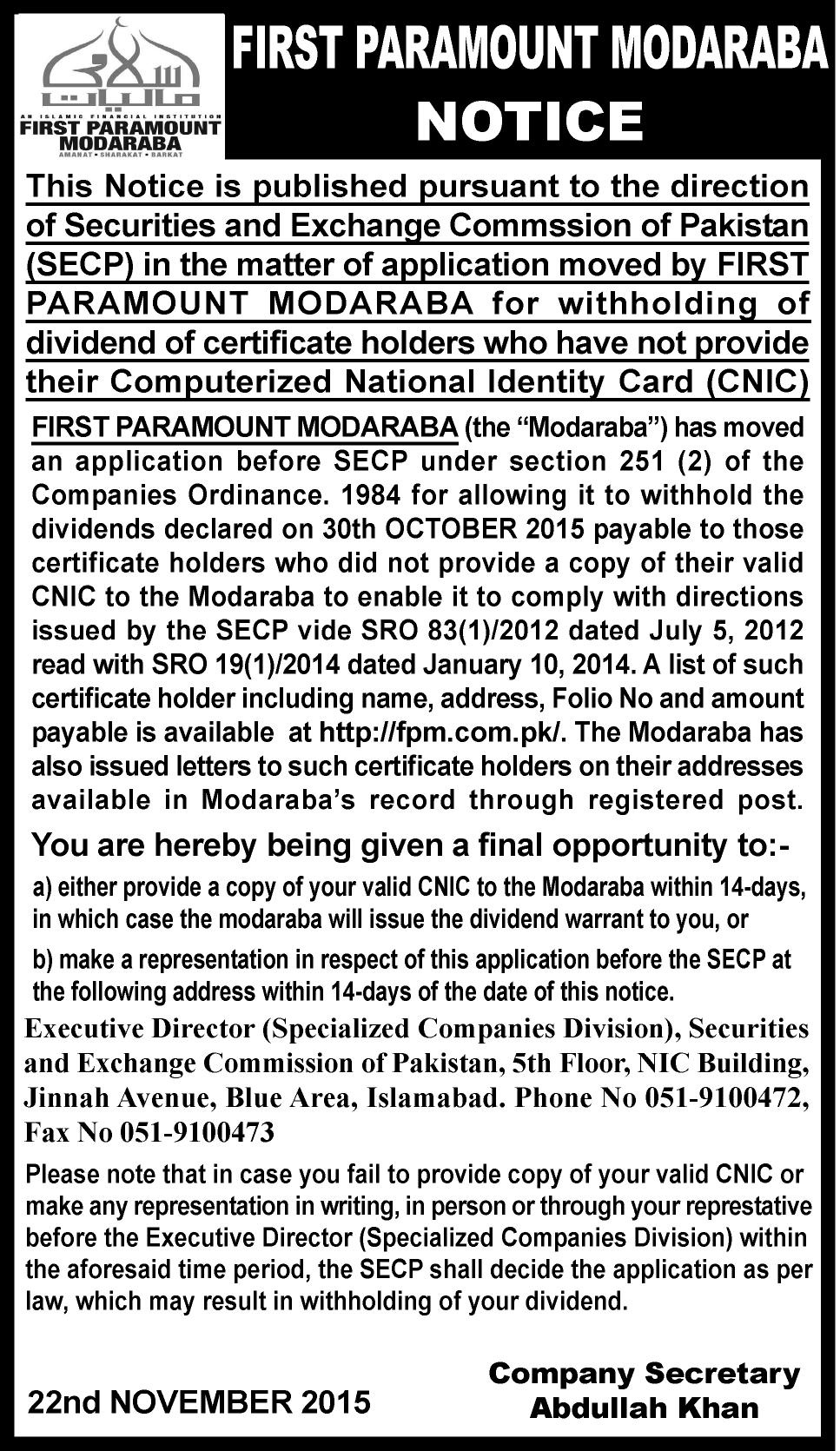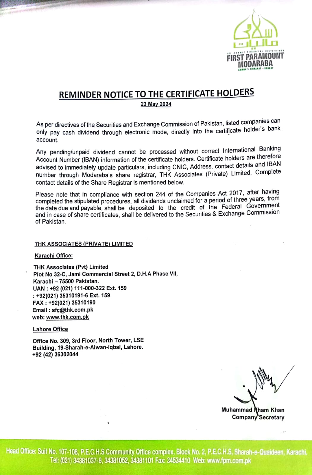 NOTICES TO SHARE HOLDERS