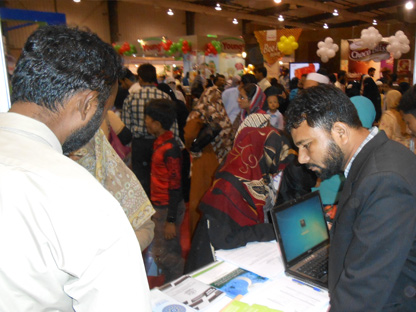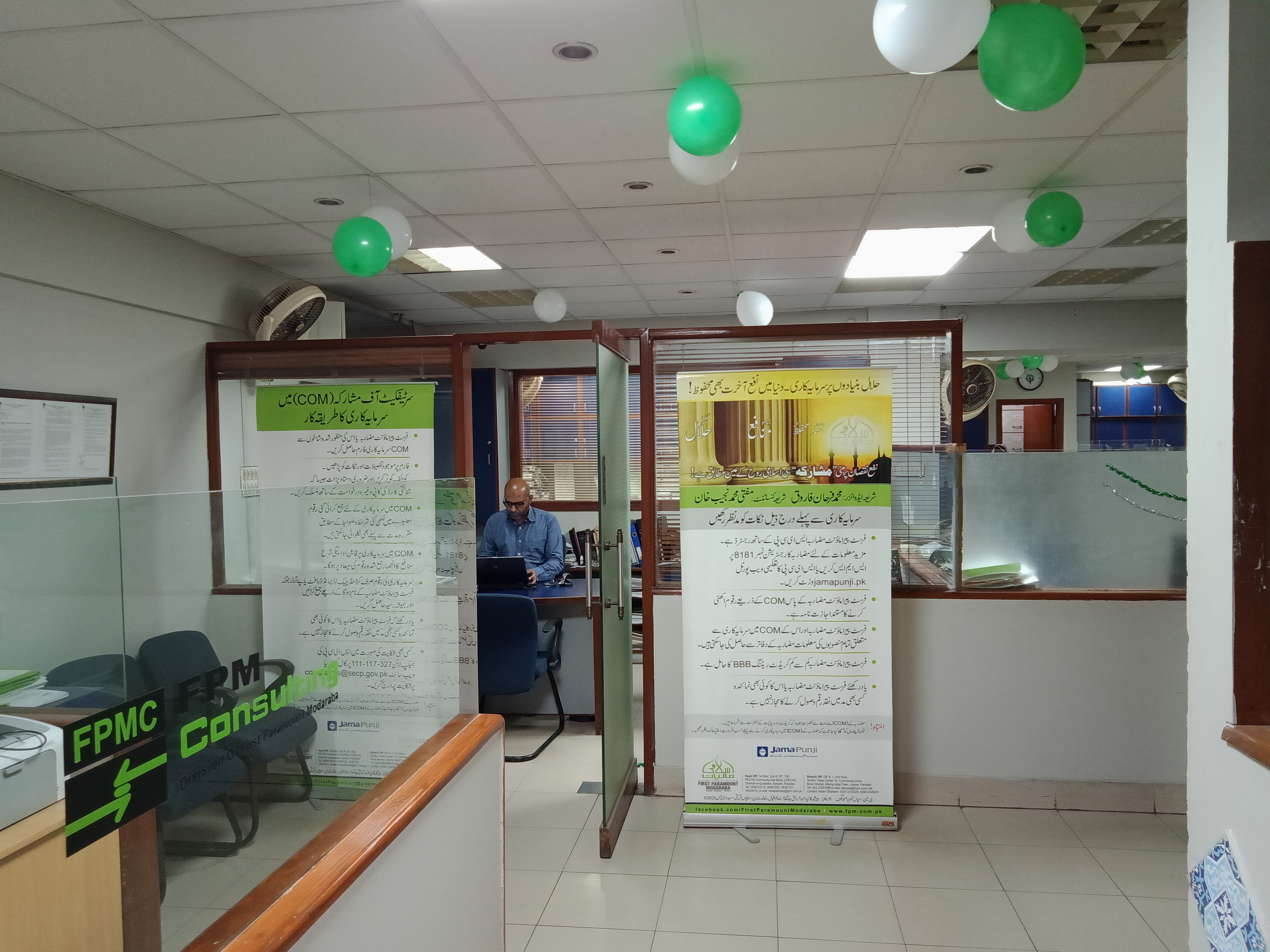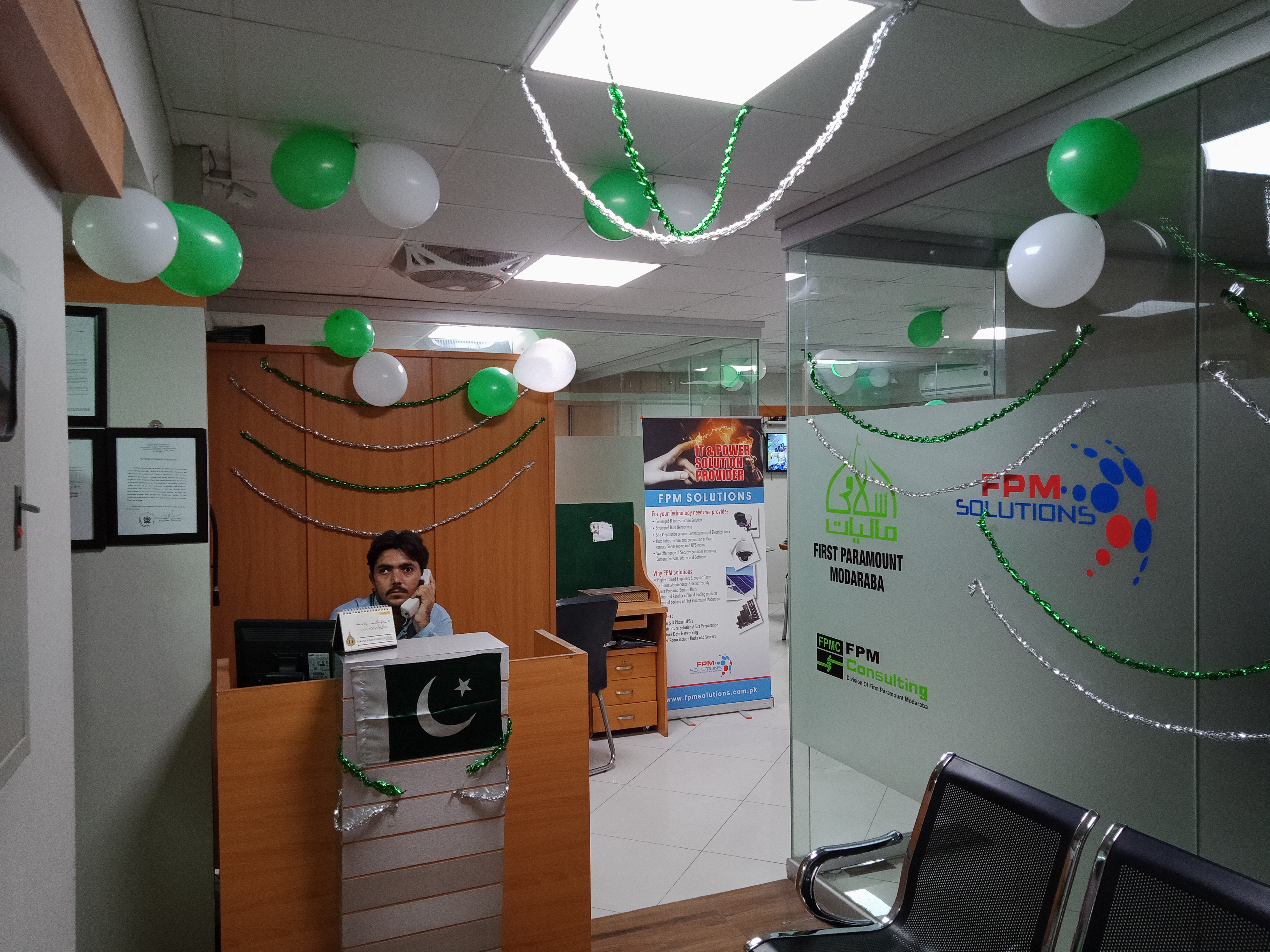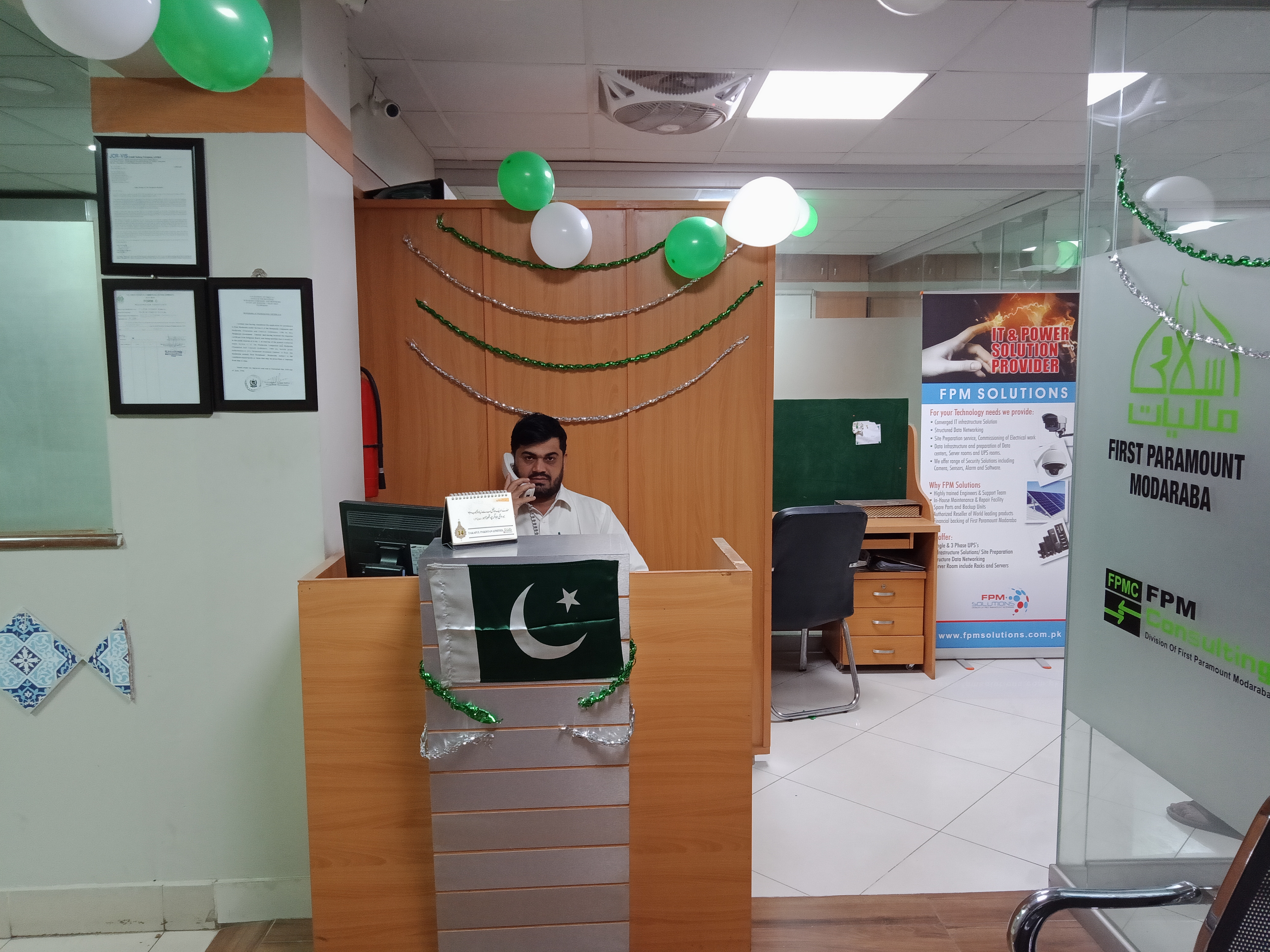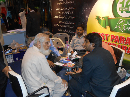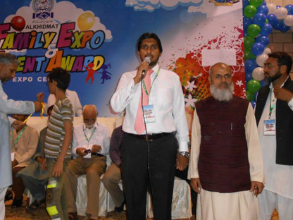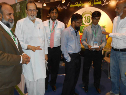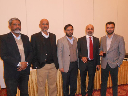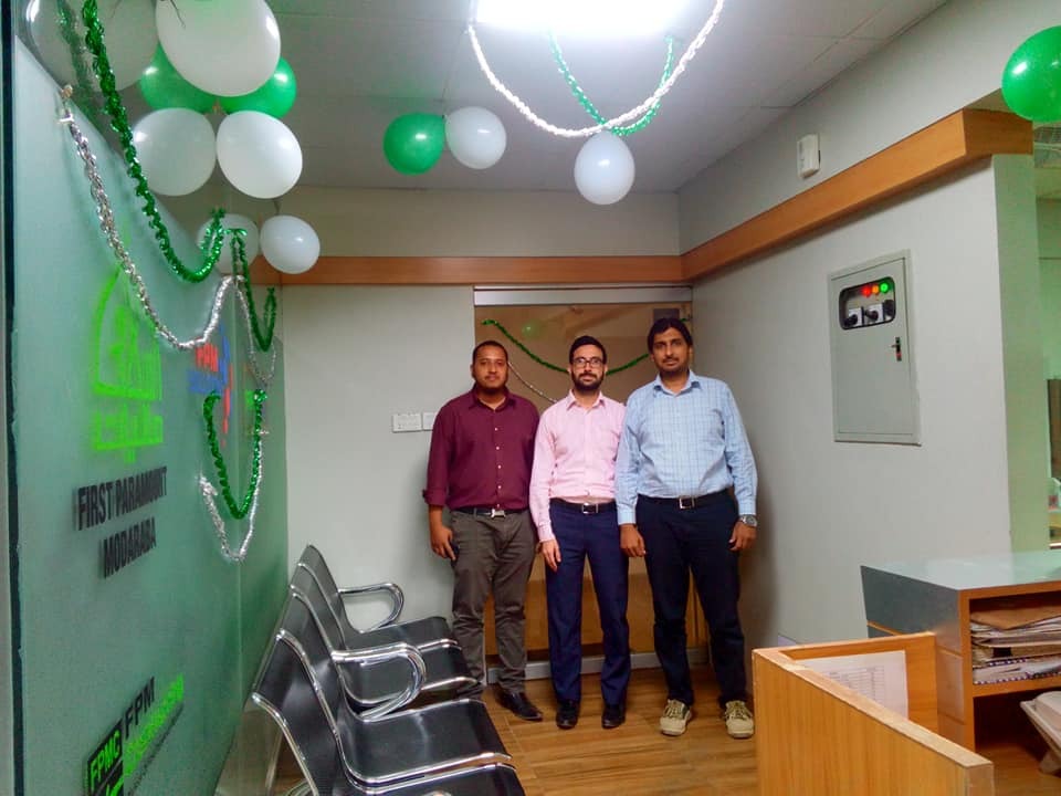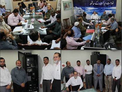 Engineer Abdul Aziz (Secretary Al-Khidmat Welfare Society), Mr. Syed Wajih Hassan (CEO, FPM), Mr. Humayun Qureshi (Director FPM), Mr. Aamir Salman & Mr. Osama Javeed (FPM Solutions) in the opening ceremony of installation of HMIS Networking System in Al-Khidmat Diagnostic Center.
